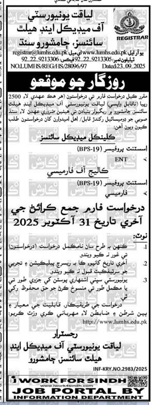 Applications are invited from qualified/ eligible candidates having domicile of Sindh Province for the following teaching positions on regular basis at Liaquat